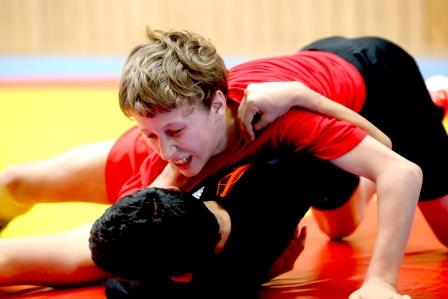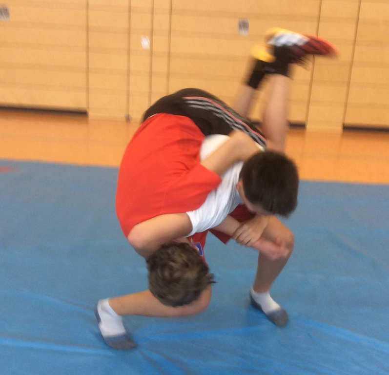 Zu unserer Überraschung konnten wir aufgrund einiger Gewichtsprobleme nicht alle Gewichtsklassen besetzen. Vielleicht war wieder die Pizza am Abend zuvor schuld daran. Die Schüler ließen sich dadurch nicht beirren und zeigten auf der Ringermatte, dass sie nicht nur kämpfen können, sondern mittlerweile auch viele Griffe technisch perfekt anwenden.