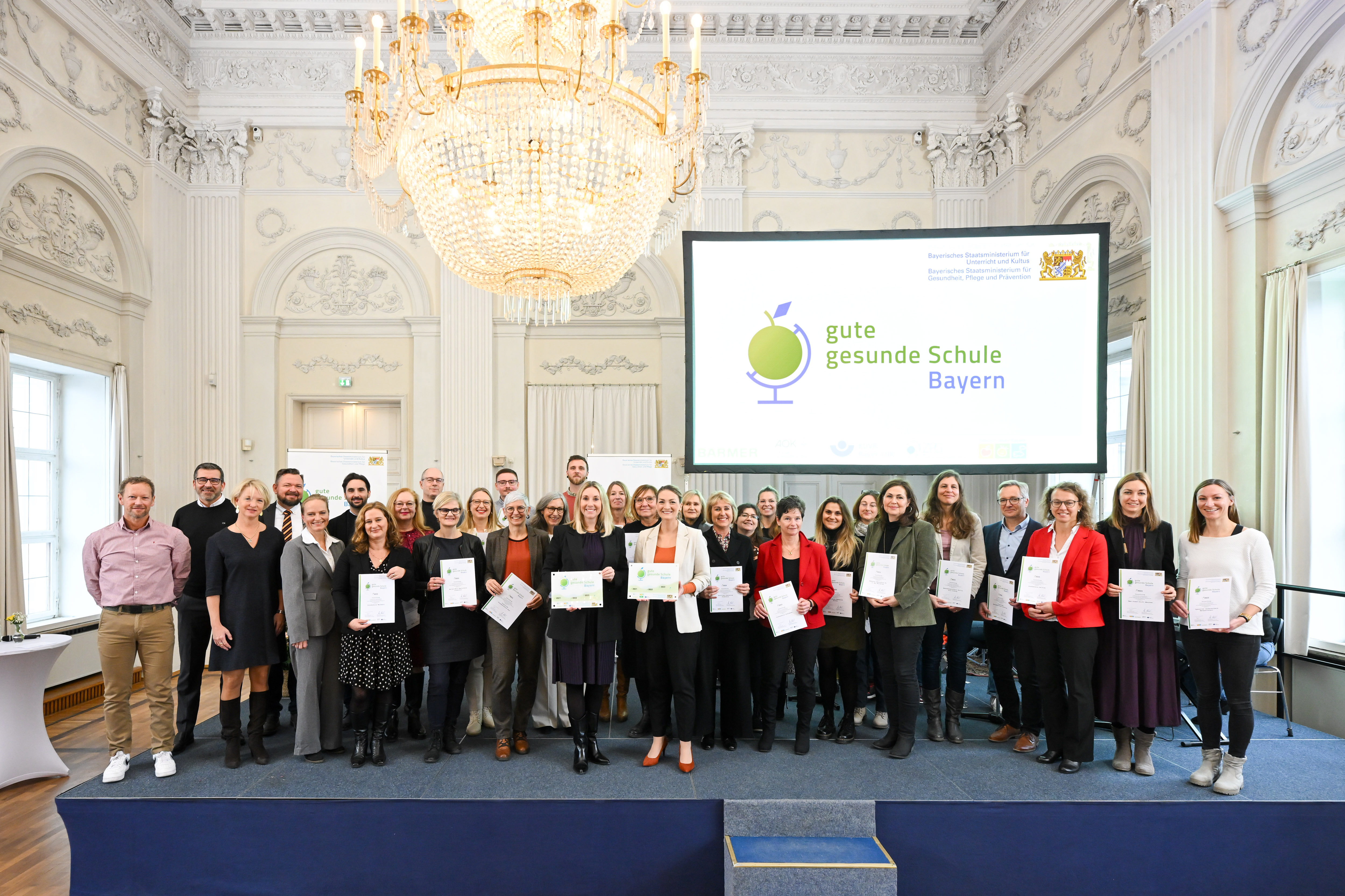 Die Realschule Bad Tölz wurde erneut am 29.11.2023 als „Gute gesunde Schule Bayern“ ausgezeichnet und von Frau Claudia Just, unserer Schulpsychologin, beim Emfang im Herkules Saal der Residenz München vertreten.