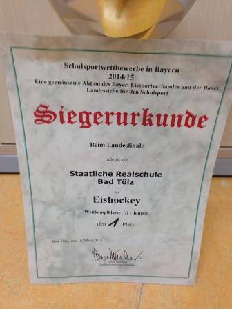 Beide Eishockeycracks sind ehemalige Schüler der Realschule und jetzige Profis bei den Thomas Sabo Tigers Nürnberg und der Düsseldorfer EG in der DEL. Als Geschenk brachten Leo und Maxi jeweils ein Original-Trikot mit, dass wir in unserer neuen Eishockeyvitrine, zusammen mit Pokalen, Fotos und Hockeygegenständen, ausstellen werden. Wir hoffen, dass die Tölzer "Eishockey Hall of Fame" in Zukunft noch mehr wächst und viele weitere Schüler den Weg in die höchsten Spielklassen der Welt finden. Ein herzlicher Glückwunsch geht dazu auch an Konrad Abeltshauser, der kürzlich die Meisterschaft in der amerikanischen ECHL gewann und nun einen Angriff auf die NHL, den Traum einens jeden Spieler, unternimmt. Wir drücken Konrad die Daumen und wünschen Ihm nächste Saison packende Duelle gegen Jagr, Crosby und co.